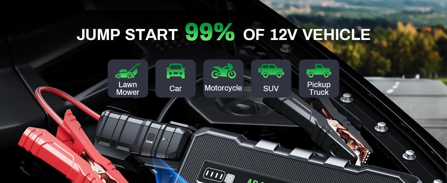 【Friendly Tips】1. Please keep the battery starter power above 50%, the startup efficiency will be better.2. If you don't use it for a long time we recommend you recharge the jump starter once every three months. 3. Under the “BOOST MODE”, you need to start the car within 30 seconds, otherwise it will exit BOOST mode. If you have any questions, please send us an email: support@getampbank.com.